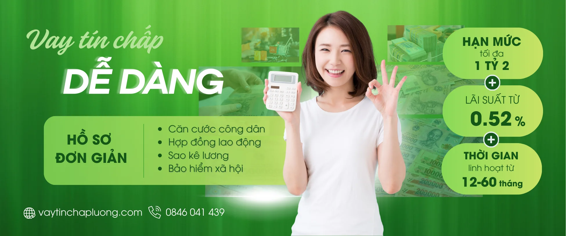 – Khách hàng thực hiện khoản vay 100 triệu trong 12 tháng với lãi suất thẩm định 0,52% / Tháng